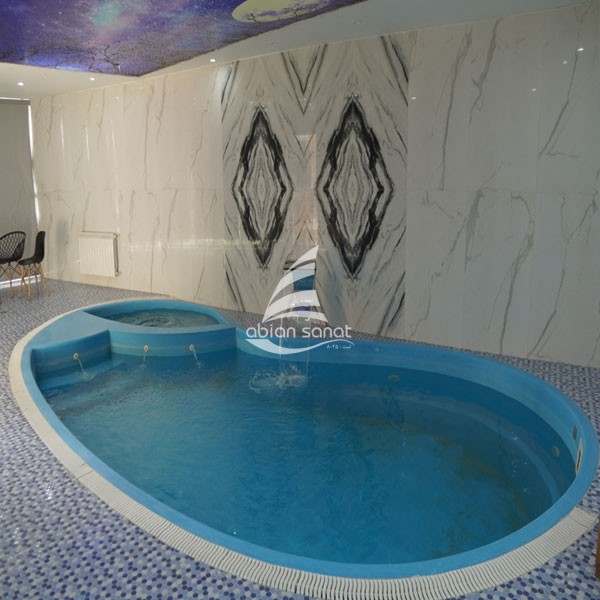 ابعاد مفید داخلی:3٫5×7٫4 متر ابعاد خارجی:3٫8×7٫6 متر ارتفاع با شیب ملایم از 1٫1 الی 1٫7 متر حجم آب استخر:40000لیتر وزن استخر:1000kg تعلقات این استخر شامل نازل های ABS سیستم اسکیمر و سرریزه ، و نورپردازی این استخر با چراغ های مولتی کالره..